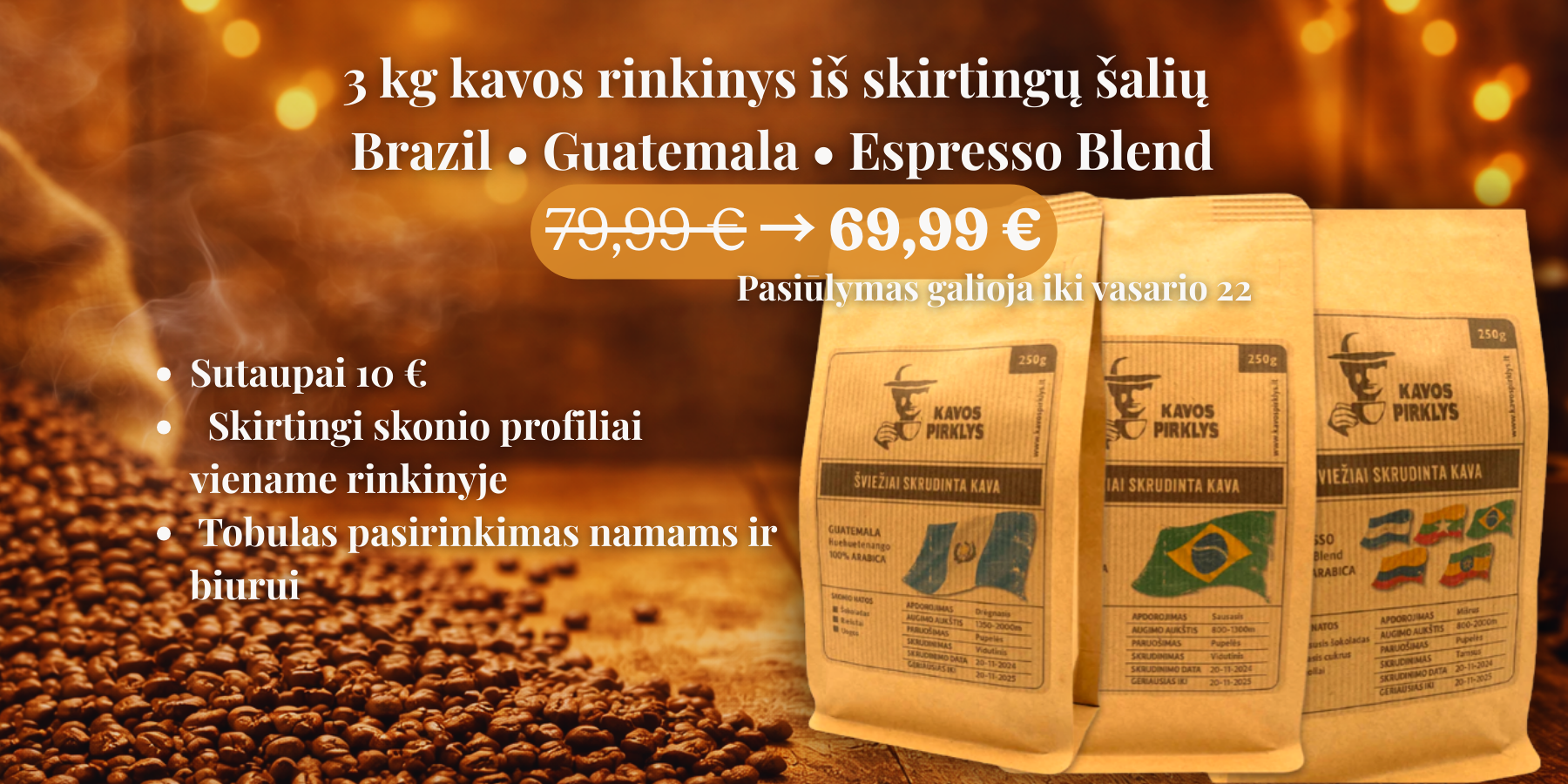 Galime parašyti, kai turėsime nuolaidas, kurios padės nuolat sutaupyti iki 30% kavos išlaidų.