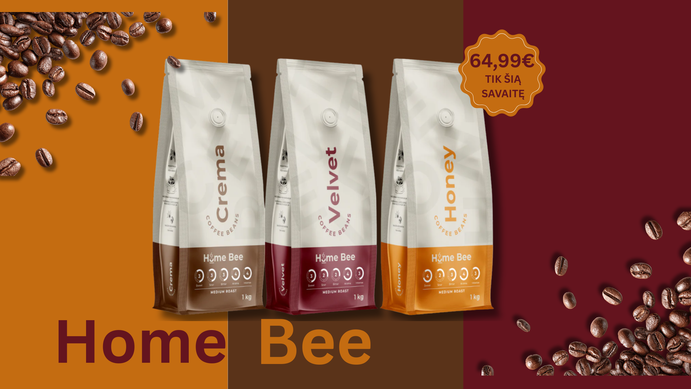 Home Bee Honey | Premium Kavos Pupelės | nuo 1KG